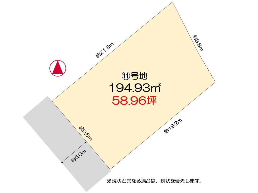| 接道状況 | 南西側 6.0m 一方 公道 接面:9.6m |