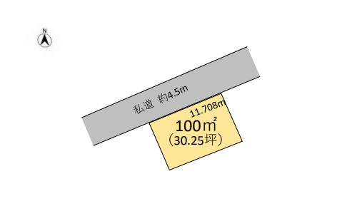 | 接道状況 | 北側 4.5m 一方 私道 接面:11.7m |