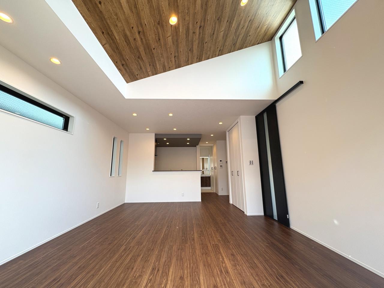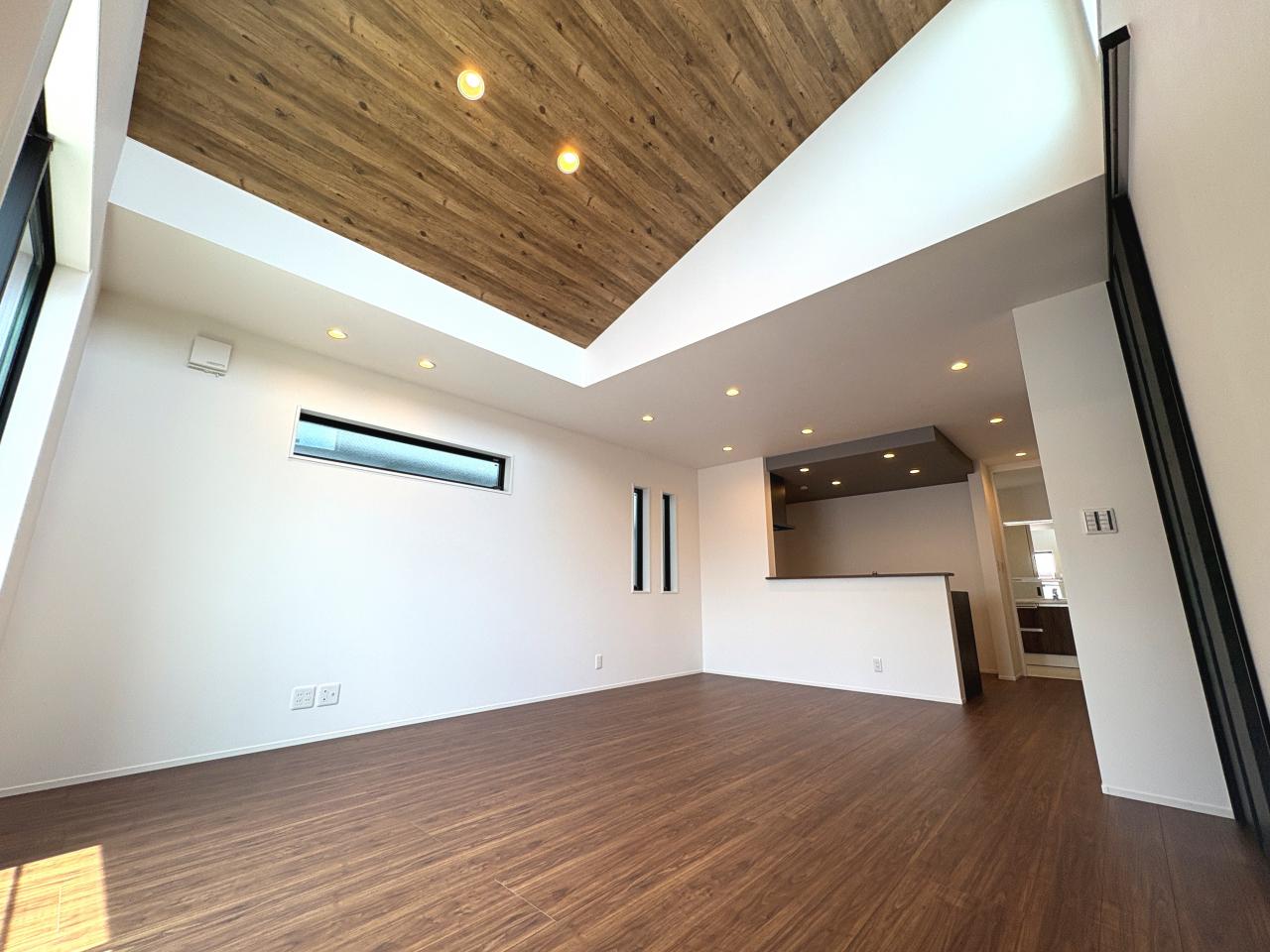 広さは18.5帖♪一家団らんできる空間が広がります!勾配天井を採用しており開放的なリビング空間♪