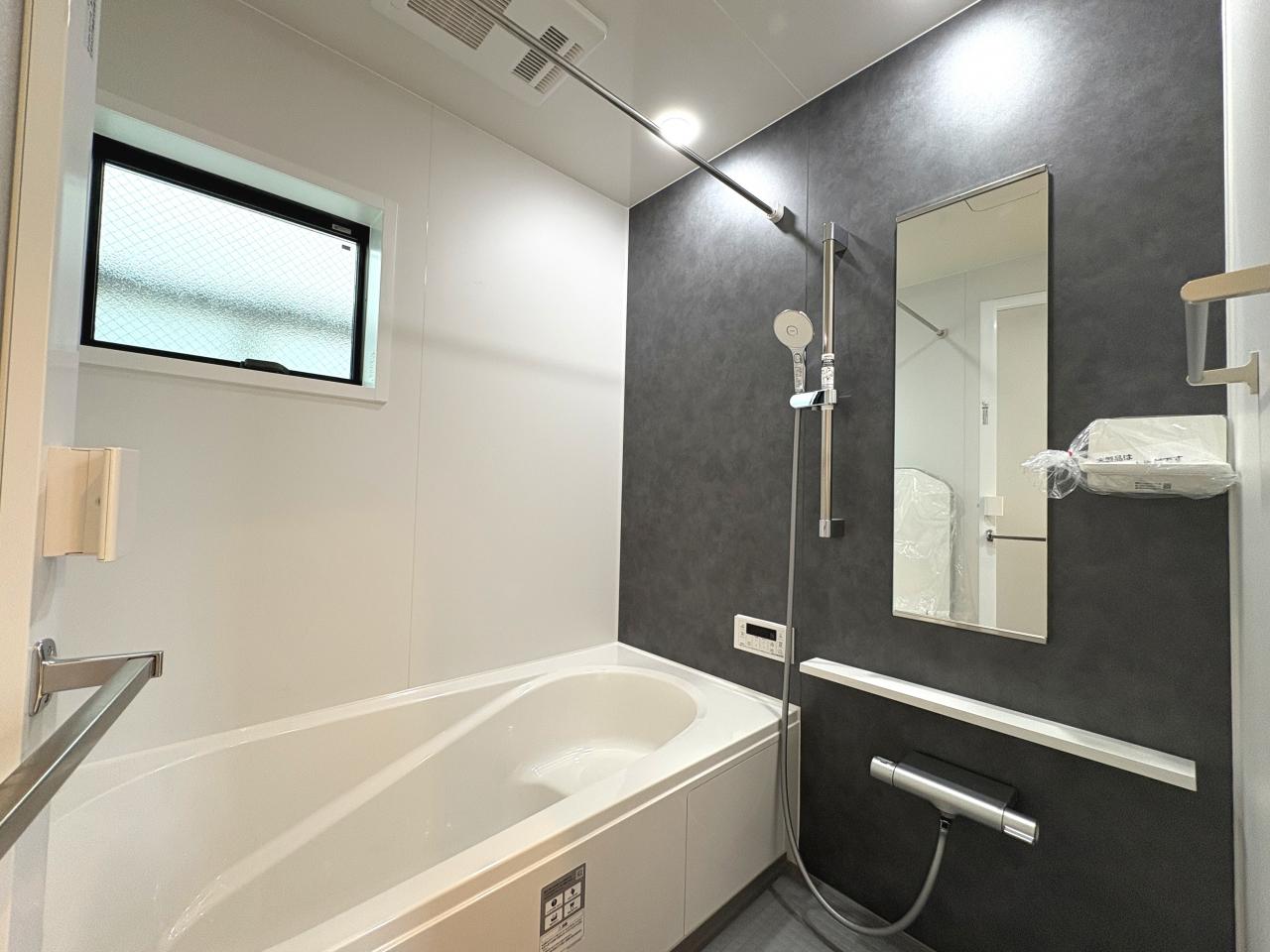 足を伸ばしてゆったりご入浴出来る1坪サイズユニットバス、内装は落ち着いたカラーを選択いたしました♪