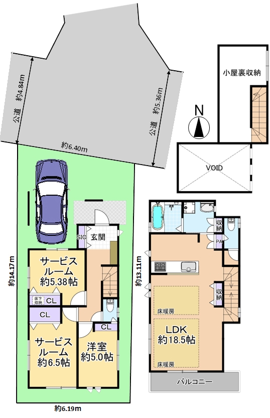 | 接道状況 | 北側 4.84m 一方 公道 接面:6.4m |