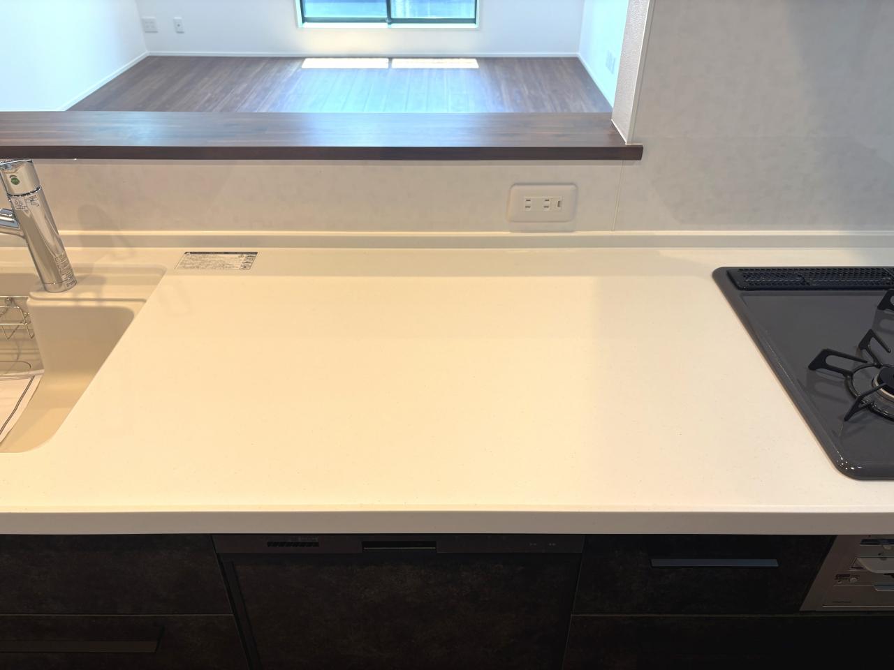 シンクと同一素材でキズに強い人造大理石製のワークトップを採用しております。