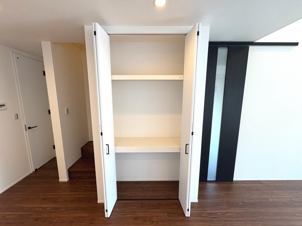 リビングの収納庫。子供のオモチャや生活用品など、手軽に出し入れできる便利な収納です♪