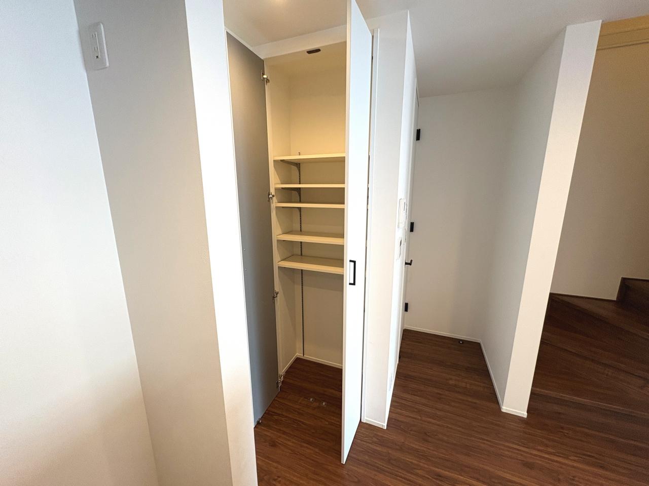 キッチン横にはパントリーとしても収納できるスペースを確保しました。