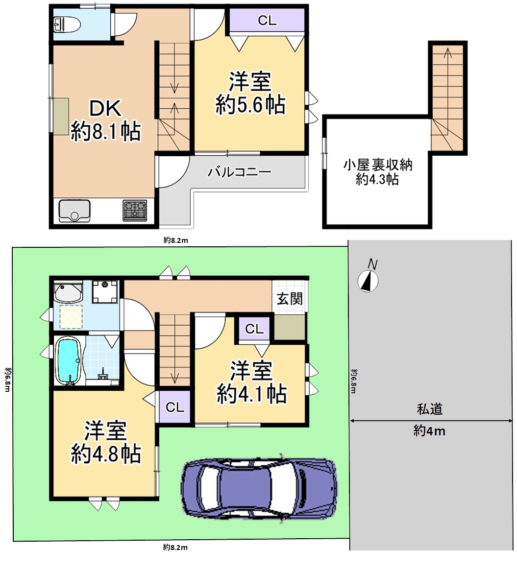 | 接道状況 | 東側 4m 一方 私道 接面:6.8m |