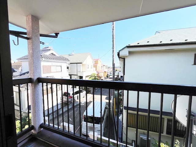 ■奥行きがあり、明るい南向きのバルコニー。洗濯物が乾きやすく、家事の心強い味方です。手すりを使ってたくさんの布団を干すこともできそうです。