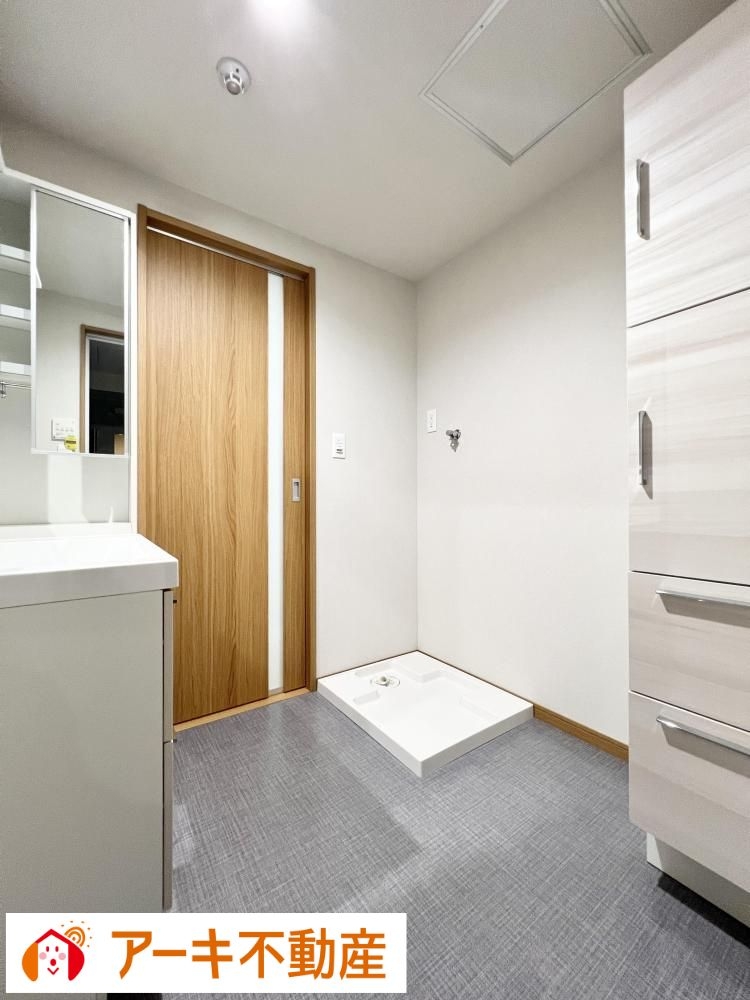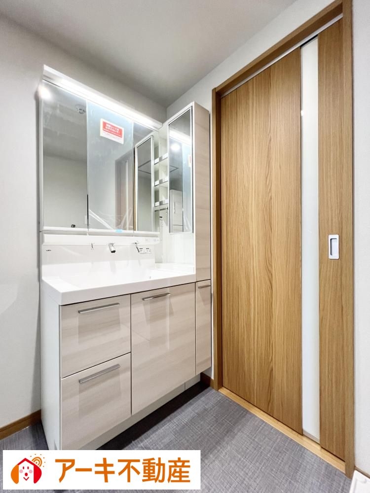 ≪洗面室≫収納たっぷりの洗面室! タオルや洗剤類をすっきり片付けられ、快適な身支度スペースになります