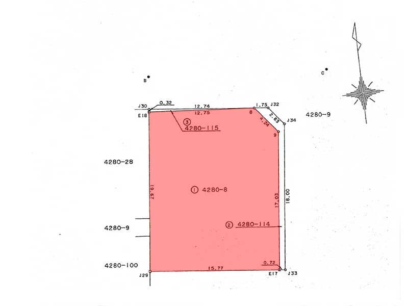 | 接道状況 | 北側 6m 私道 位置指定:有 接面:17.8m、東側 6m 私道 位置指定:有 接面:17.4m |