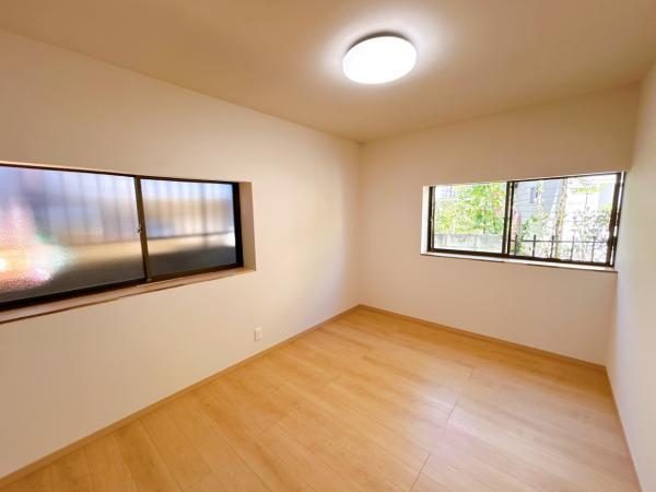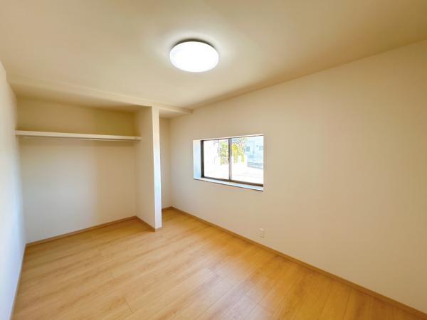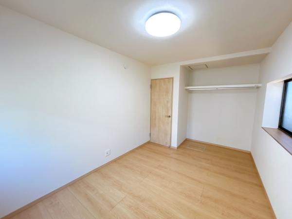 【リフォーム済】北側約6帖洋室です。フローリング張り、壁天井クロス仕上げ、照明新品交換、クローゼット新設等を行いました。