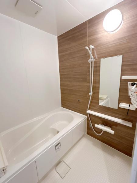【リフォーム済】ユニットバスは新品に交換しました。浴槽は大人も足を伸ばしてゆったり浸かれる広さです。
