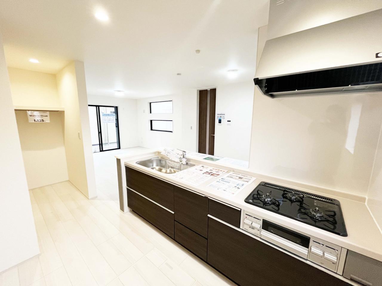 ■お料理をしながらでもご家族との会話を楽しめる対面キッチンです。豊富な収納スペースを確保しております。