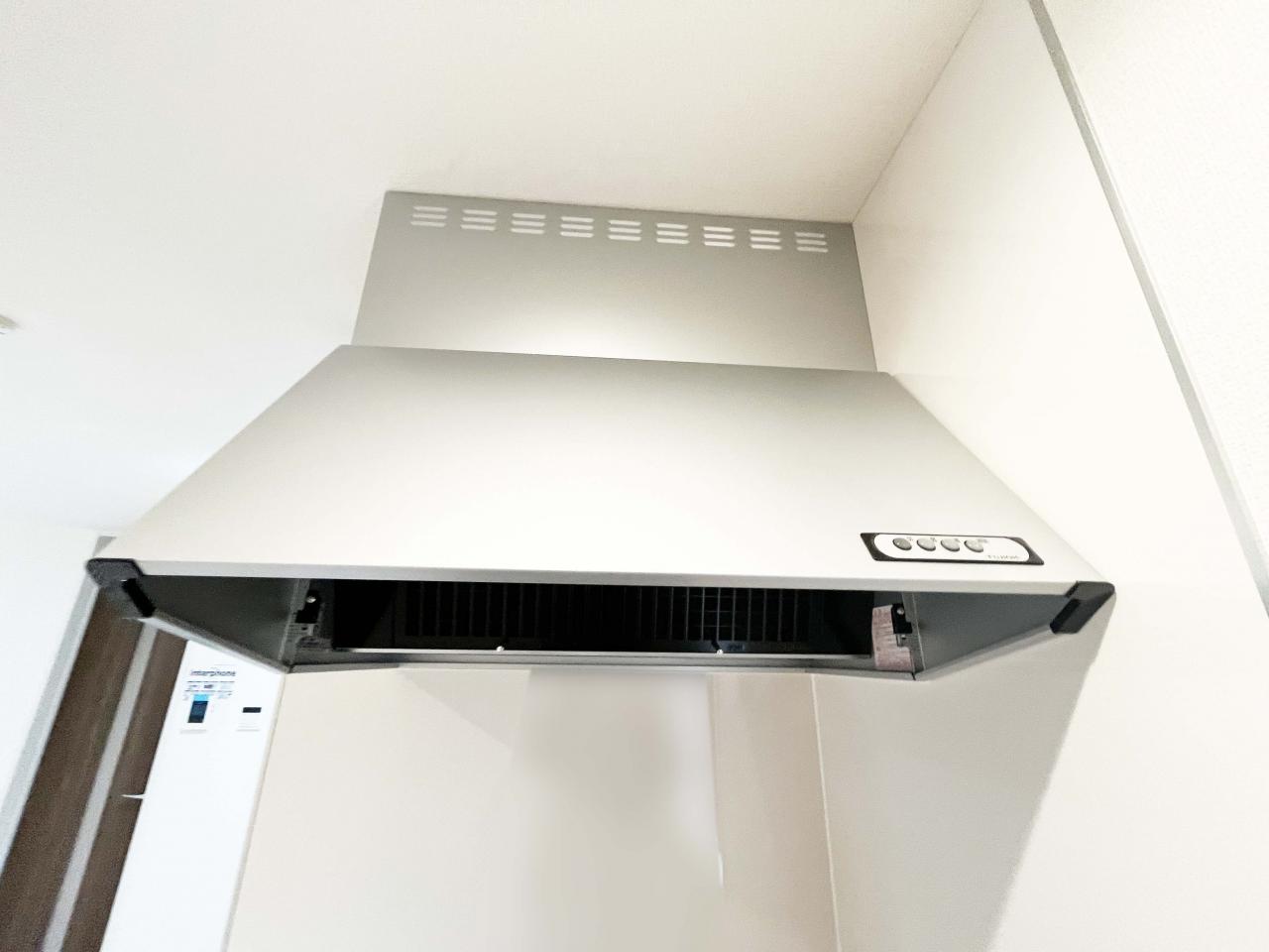 ■換気扇フード シンプルですっきりとしたタイプの換気扇フード。お掃除も簡単に出来ますね。