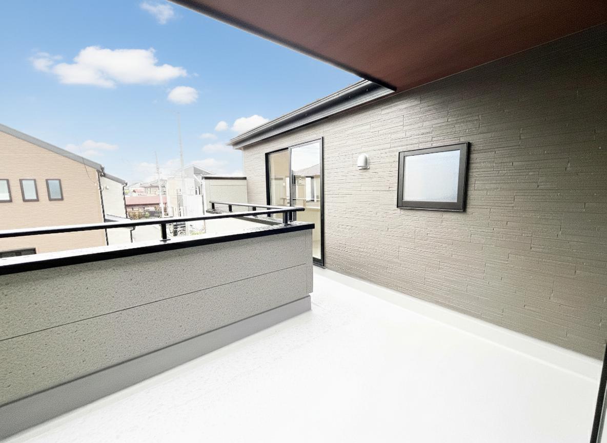 ■奥行きがあり、明るい南西向きのバルコニー。洗濯物が乾きやすく、家事の心強い味方です。手すりを使ってたくさんの布団を干すこともできそうです。