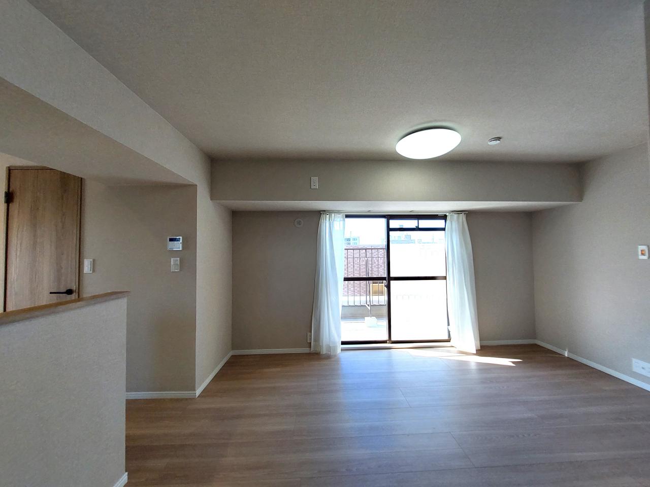 南側にある約6.8帖の室内の様子です。南側が開けているので、陽当たり眺望共に◎日差しで目覚める朝は、健康習慣の理想型。