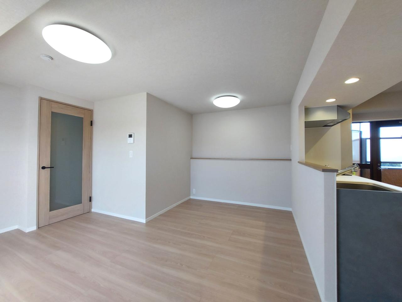 キッチン横のバルコニーは開閉口が広く換気、風通し◎東側からの辺り、気持ちよく料理ができます。