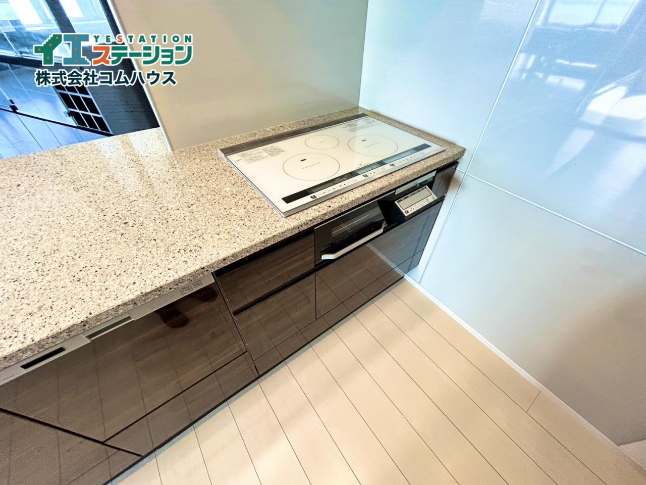広々とした作業スペースが特徴のシステムキッチン。ご夫婦で一緒に楽しくお料理が出来ます。