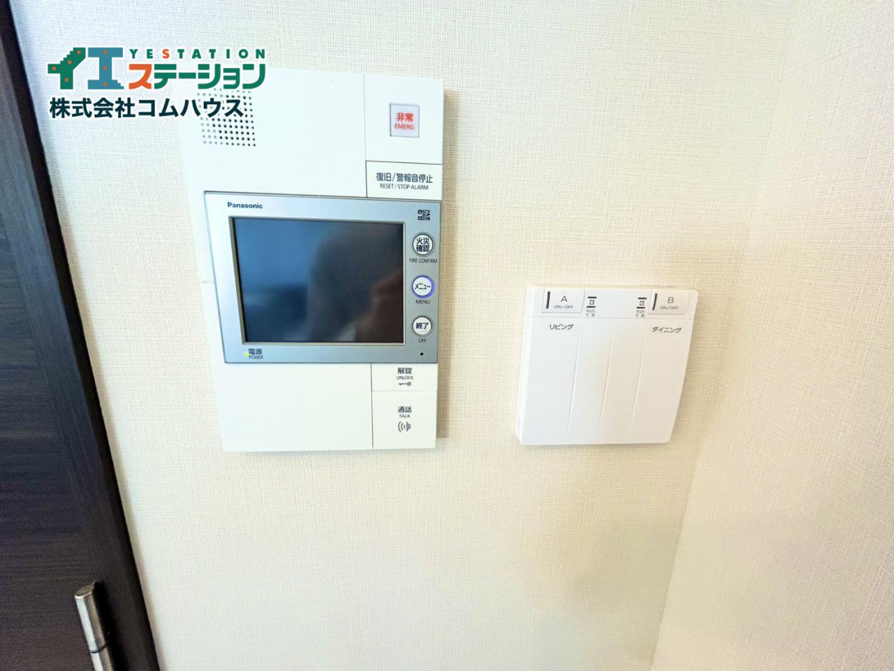 TVモニター付きインターフォン。玄関まで出なくて誰が来たのか確認できるので安心ですね。お子様のお留守番用にも。