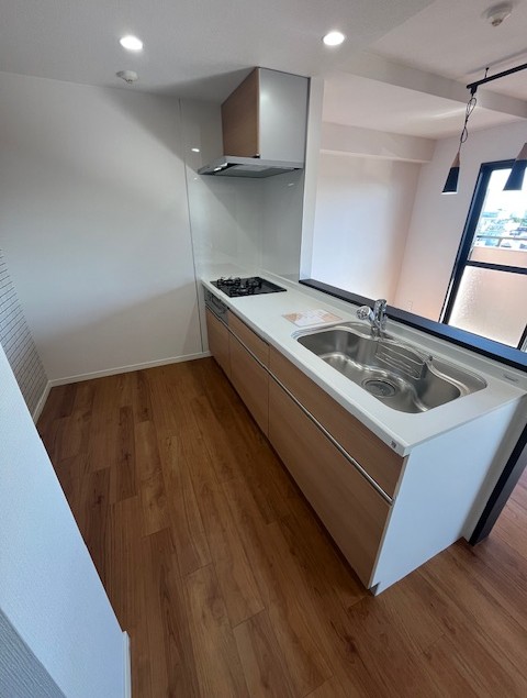明るく開放感のあるオープンキッチンは家族との会話もはずむ対面式。