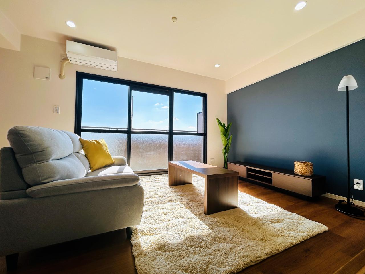 南向きのリビングは、暖かな日がたっぷり入る陽だまり空間になります。室内設置の家具は【物件と一緒にお引渡し】となります