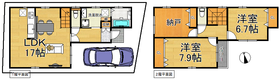 | 土地面積 | 76.85m2(23.24坪) | 建物面積 | 89.42m2(27.04坪) |