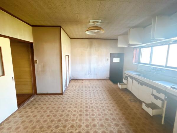【リフォーム中】隣の部屋とつなげて、約19帖のLDKにリフォームする予定のダイニングキッチン側です。