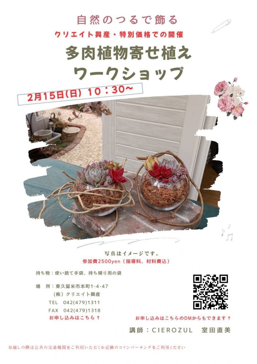 「多肉植物の寄せ植えワークショップ」♪♪