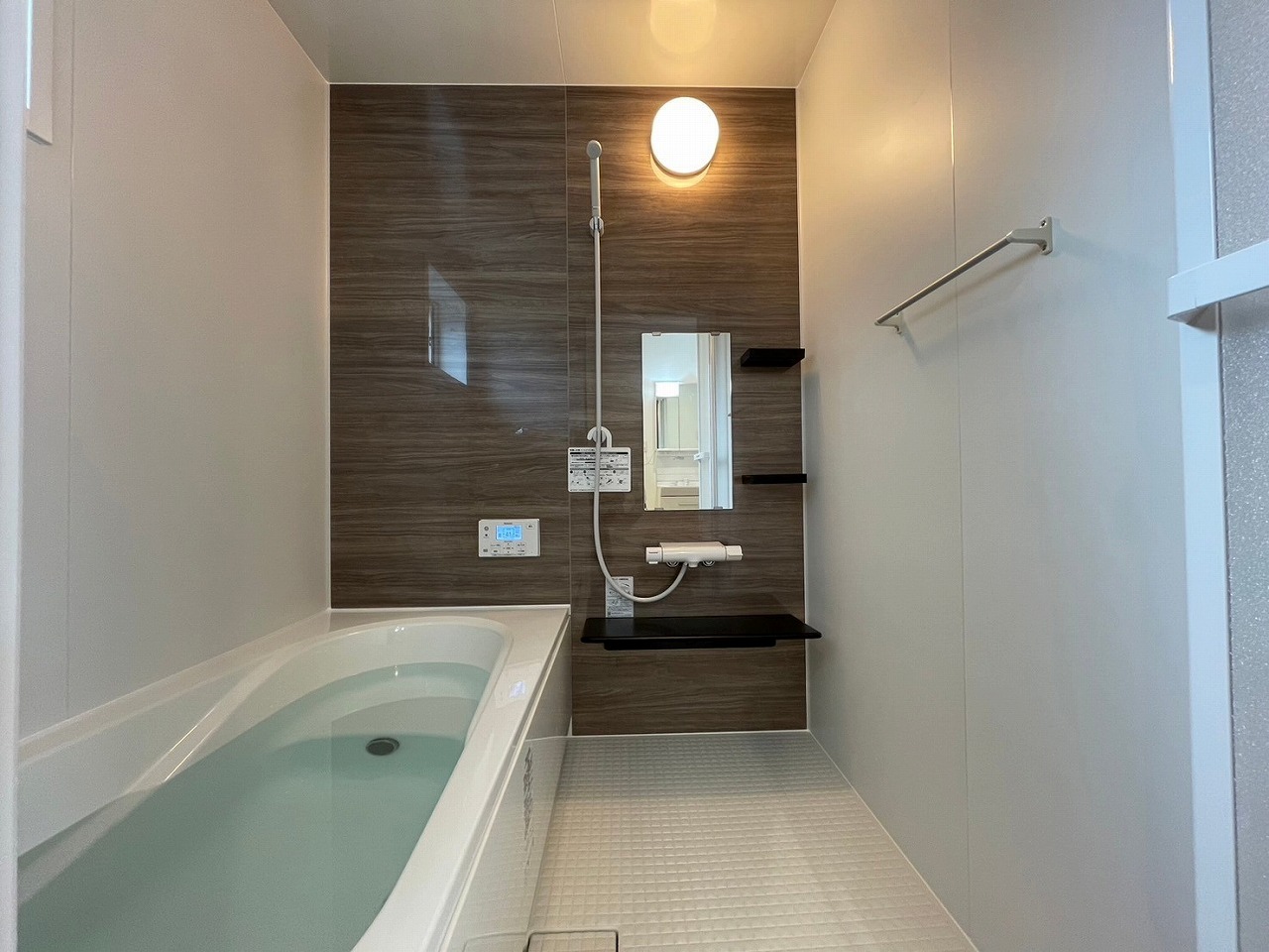 落ち着いた色調で毎日の疲れを癒す浴室♪