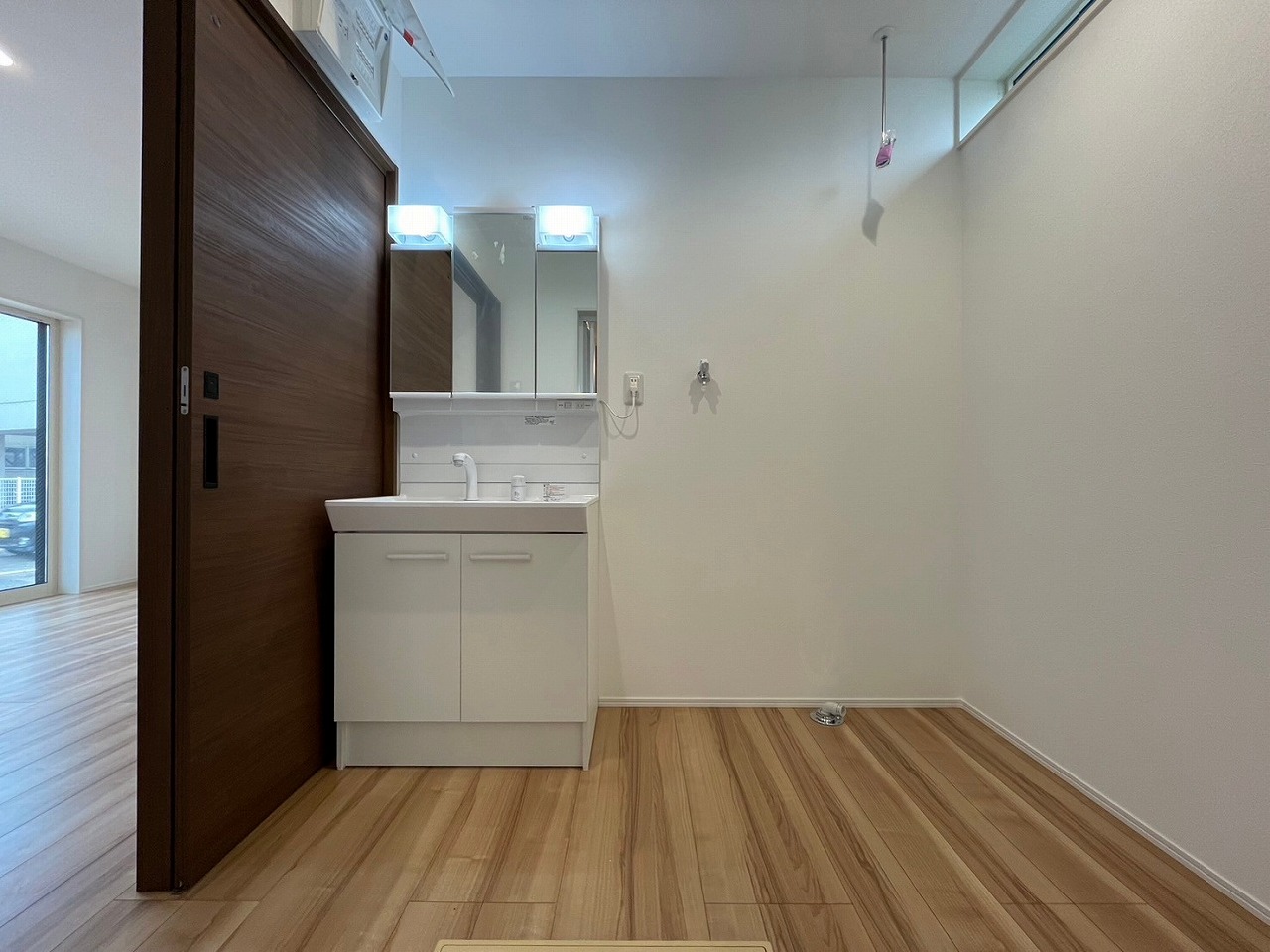 洗面脱衣室にはホスクリーン付きなので、洗濯物も楽々干せます♪